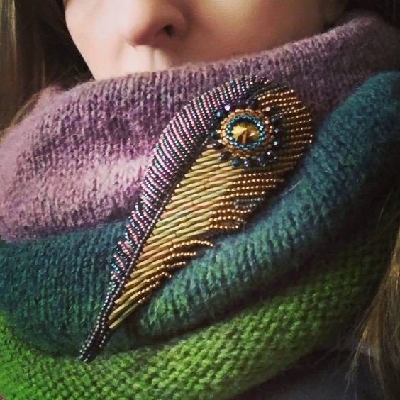 брошь перо из бисера своими руками