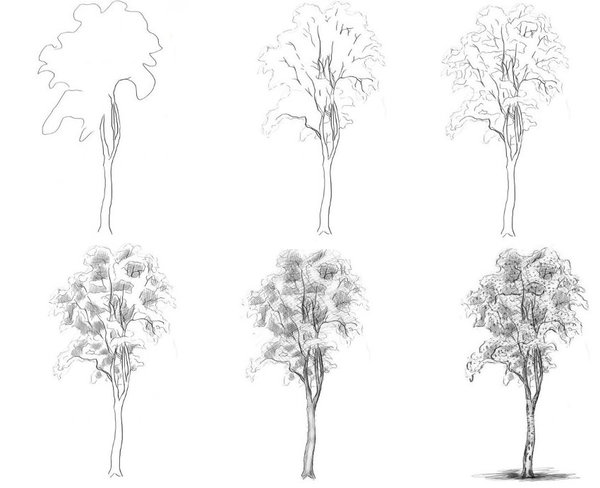 как нарисовать дерево карандашом поэтапно