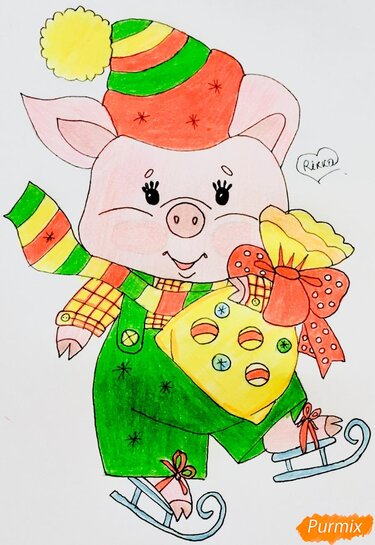 как нарисовать свинью на новый год